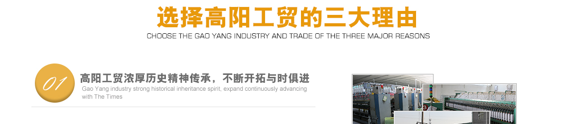 太倉(cāng)市高陽(yáng)工貿(mào)有限公司是專(zhuān)業(yè)從事特種紗生產(chǎn)十?dāng)?shù)年的一線(xiàn)生產(chǎn)廠(chǎng)家,坐落于江蘇省蘇州市太倉(cāng)市雙鳳鎮(zhèn)新湖建湖路29號(hào),太倉(cāng)隸屬長(zhǎng)江三角洲經(jīng)濟(jì)圈,交通便捷,經(jīng)濟(jì)發(fā)達(dá),是著名的紡織生產(chǎn)基地。 公司歷史要追溯到1982年就成立的新湖毛紡織廠(chǎng)。1996年,毛紡織廠(chǎng)與上海二十二棉在新湖聯(lián)合組建了太倉(cāng)市新湖福利綜合廠(chǎng)。2002年為適應(yīng)市場(chǎng)的飛速變化,公司轉(zhuǎn)制重組更名為太倉(cāng)市高陽(yáng)工貿(mào)有限公司。同時(shí)公司適時(shí)調(diào)整生產(chǎn)經(jīng)營(yíng)策略,調(diào)整產(chǎn)品品種結(jié)構(gòu),把生產(chǎn)特種紗作為主要發(fā)展方向,純棉、滌綸竹節(jié)紗是我們的主要產(chǎn)品。 公司多年來(lái)始終保持了持續(xù)穩(wěn)定發(fā)展的良好勢(shì)頭,在激烈的市場(chǎng)競(jìng)爭(zhēng)中發(fā)展壯大,不斷前行。我們把“走品牌發(fā)展之路,創(chuàng)紗線(xiàn)知名商標(biāo)”作為公司持續(xù)發(fā)展的核心戰(zhàn)略。以市場(chǎng)為導(dǎo)向,堅(jiān)持“以品種求發(fā)展,以質(zhì)量求生存”的方針,以增強(qiáng)市場(chǎng)競(jìng)爭(zhēng)力為中心,對(duì)不斷變化的市場(chǎng)環(huán)境作出快速反應(yīng),品牌戰(zhàn)略的實(shí)施。公司注重專(zhuān)業(yè)人才的引進(jìn)和先進(jìn)技術(shù)的生產(chǎn)化應(yīng)用,具備較強(qiáng)的研發(fā)設(shè)計(jì)和生產(chǎn)能力。 公司一直把“品質(zhì)、創(chuàng)新、誠(chéng)信”作為企業(yè)文化建設(shè)的核心。以品質(zhì)來(lái)獲得客戶(hù)的滿(mǎn)意,以創(chuàng)新來(lái)贏(yíng)得客戶(hù)的贊賞,以誠(chéng)信來(lái)博得客戶(hù)的信心。我們把“準(zhǔn)時(shí)的交貨期,提供零缺點(diǎn)的產(chǎn)品和服務(wù)”作為奮斗目標(biāo),贏(yíng)得了客戶(hù)的支持和良好的市場(chǎng)信譽(yù)。 高陽(yáng)工貿(mào)有限公司愿與廣大客戶(hù)加強(qiáng)合作,共享信息,迎接挑戰(zhàn),共同發(fā)展??蛻?hù)需求。了解詳細(xì)>>